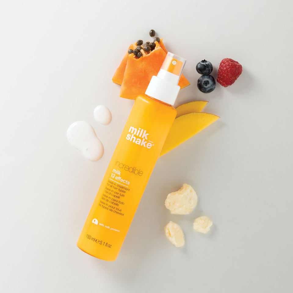 Natural ingredients like milk proteins and fruit extracts are the building blocks of every milk_shake® product. Milk protein is one of the most nutrient rich proteins due to its complete amino acid content, contributing to your hair’s structure and strength. When milk proteins and fruit extracts are infused into your hair, you will notice more shine, manageability, and softness, along with an increase in body.