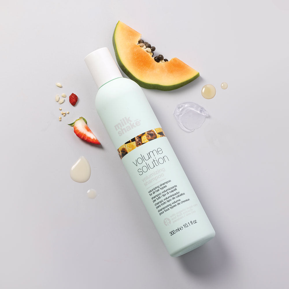 Transform flat or fine hair into full-bodied style with milk_shake volumizing shampoo. These hair styling products for volume promote long-lasting lift & fullness. This SLES-free shampoo cleanses from roots to ends to keep hair looking full and voluminous. For even more volume, follow shampooing with milk_shake volumizing conditioner.